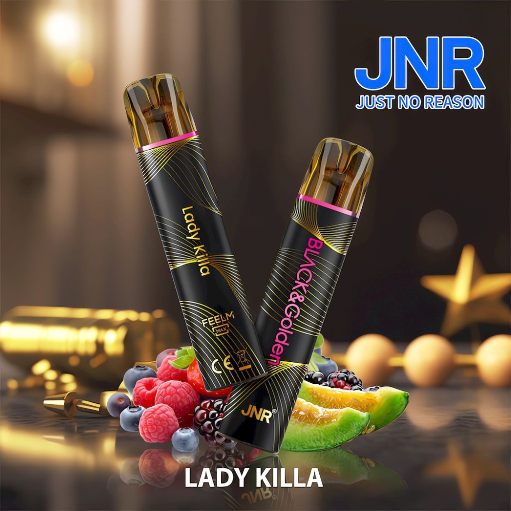 JNR Black&Golden – sofistike bir özet. Şık bir siyah ve altın tasarımla ayırt edilen bu vapes lüksü yayar.